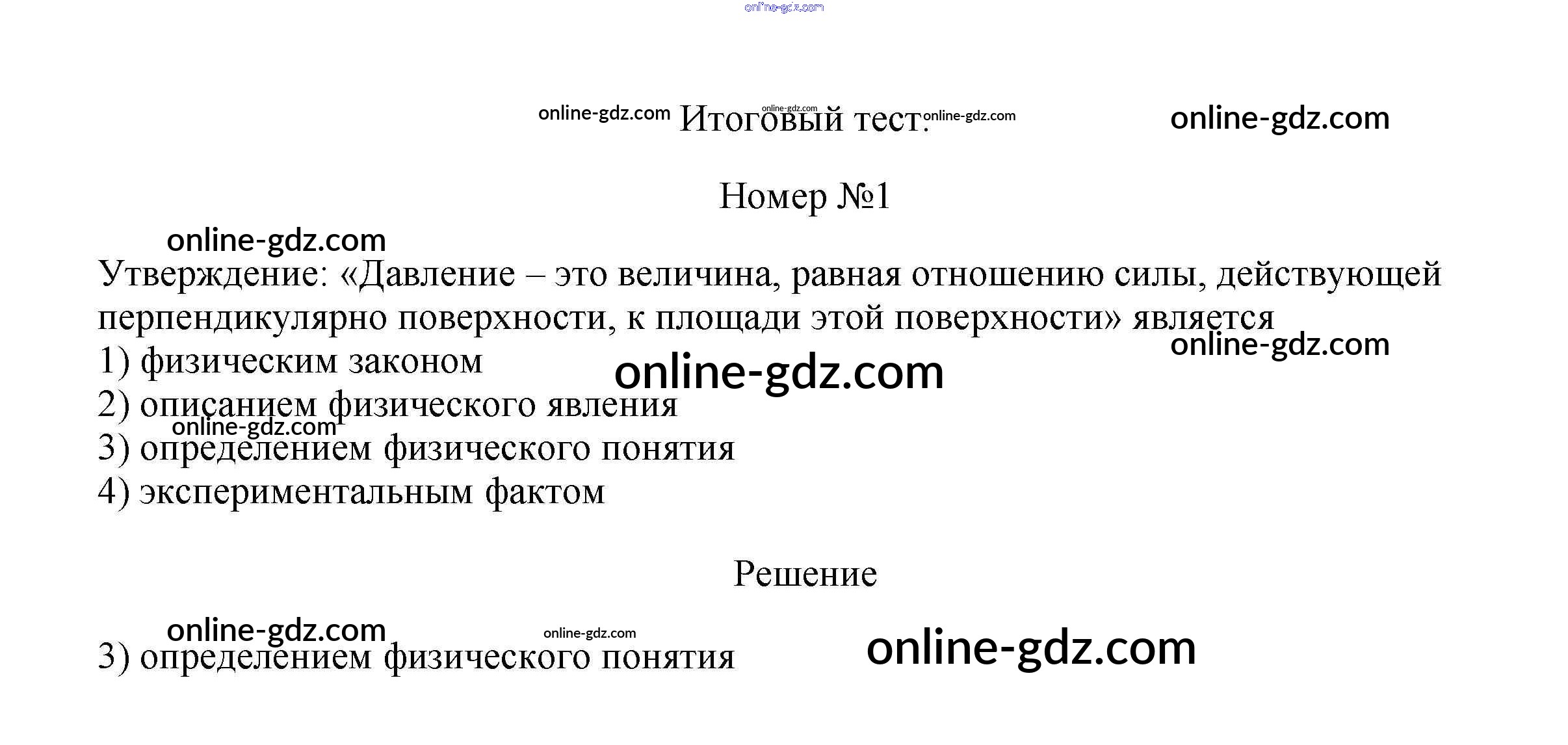 Готовые домашние задания по Физике за 7 класс Рабочая тетрадь Ханнанова, Ханнанов Вертикаль 2016 - Итоговый тест Тесты 1