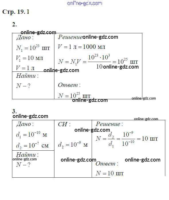 Готовые домашние задания по Физике за 7 класс Тетрадь-тренажёр Артеменков, Белага Сферы 2016 - Глава 2. Строение вещетва стр.19