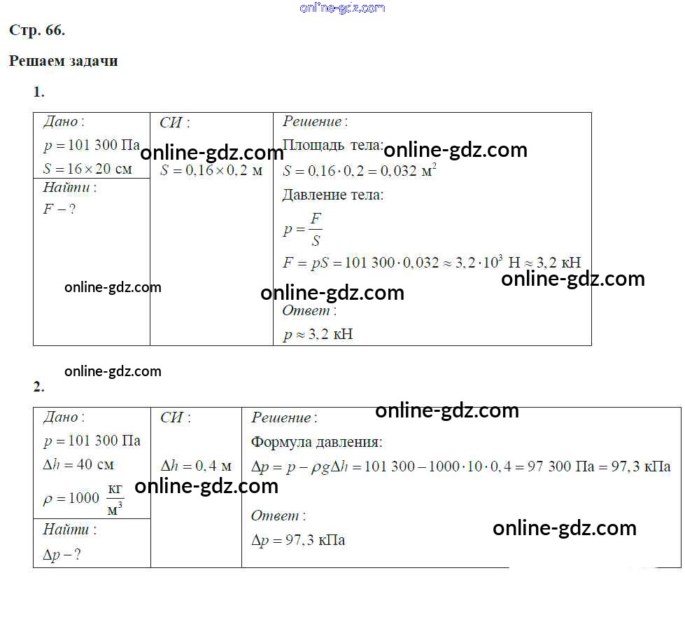 Готовые домашние задания по Физике за 7 класс Тетрадь-тренажёр Артеменков, Белага Сферы 2016 - Глава 6. Атмосфера и атмосферное давление стр.66