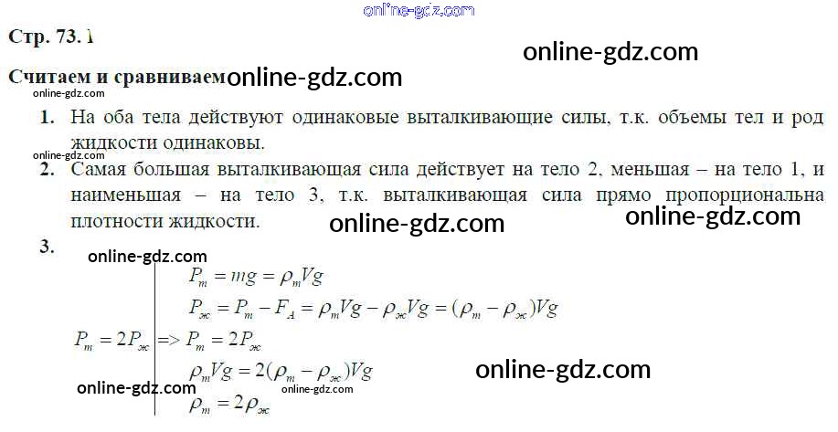 Готовые домашние задания по Физике за 7 класс Тетрадь-тренажёр Артеменков, Белага Сферы 2016 - Глава 7. Закон Архимеда. Плавание тел стр.73