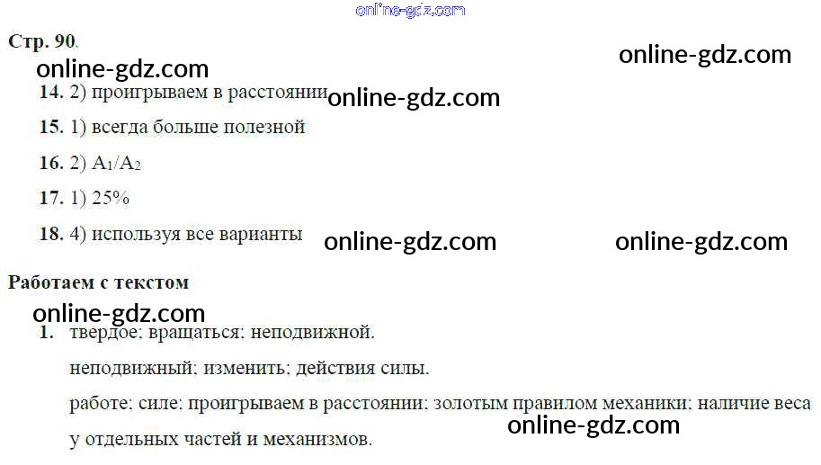 Готовые домашние задания по Физике за 7 класс Тетрадь-тренажёр Артеменков, Белага Сферы 2016 - Глава 9. Простые механизмы. "Золотое правило" механики стр.90