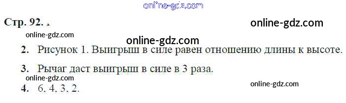 Готовые домашние задания по Физике за 7 класс Тетрадь-тренажёр Артеменков, Белага Сферы 2016 - Глава 9. Простые механизмы. "Золотое правило" механики стр.92