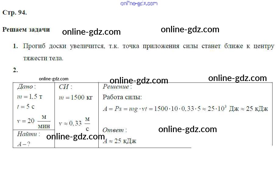 Готовые домашние задания по Физике за 7 класс Тетрадь-тренажёр Артеменков, Белага Сферы 2016 - Глава 9. Простые механизмы. "Золотое правило" механики стр.94
