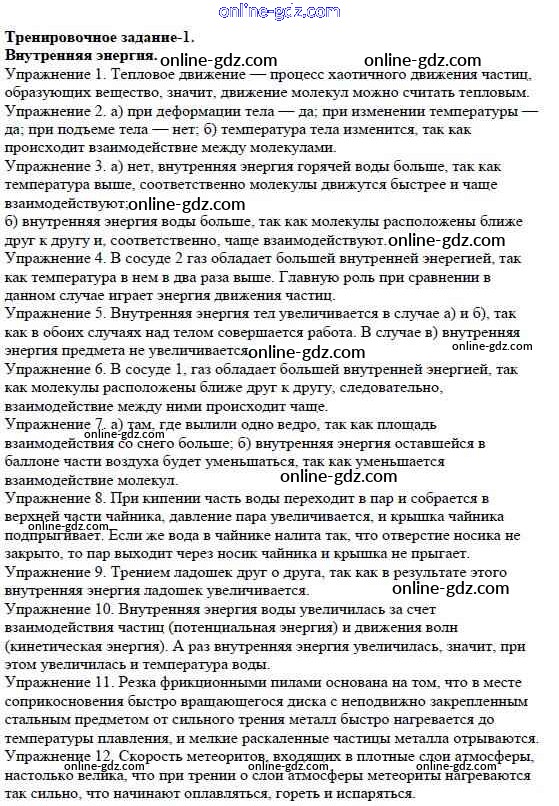 Готовые домашние задания по Физике за 8 класс Дидактические материалы Марон Вертикаль 2016 - Тренировочные задания 1. Внутренняя энергия