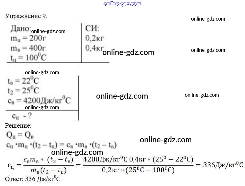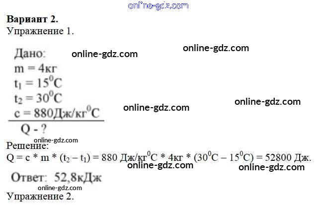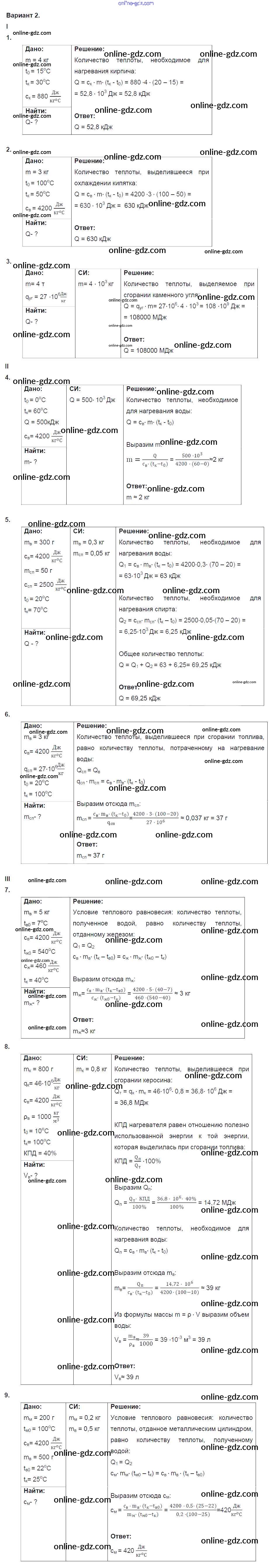Готовые домашние задания по Физике за 8 класс Дидактические материалы Марон Вертикаль 2016 - КР №1. Расчет количества теплоты. Варианты Контрольные работы 2