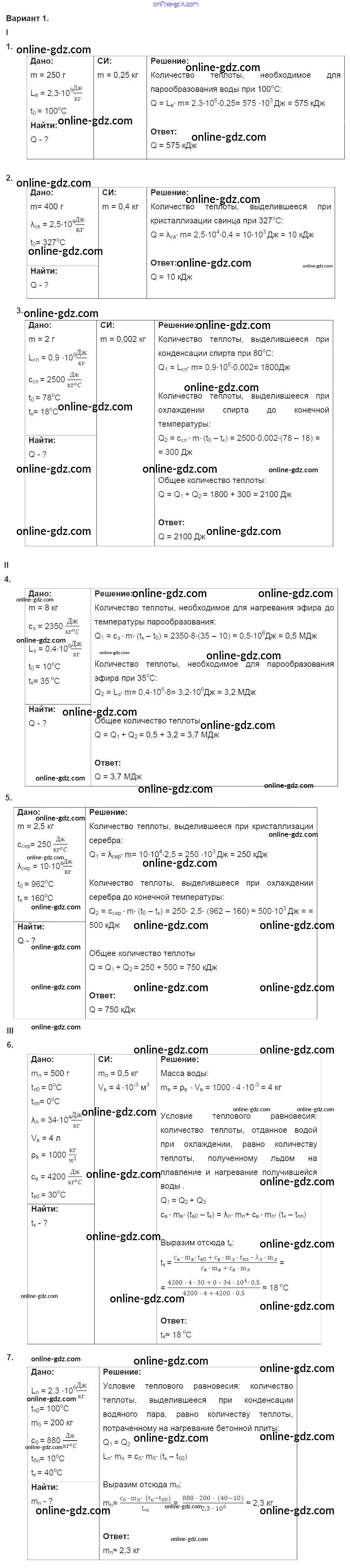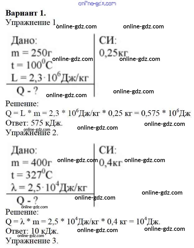 Готовые домашние задания по Физике за 8 класс Дидактические материалы Марон Вертикаль 2016 - КР №2. Изменение агрегатных состояний вещества. Варианты Контрольные работы 1