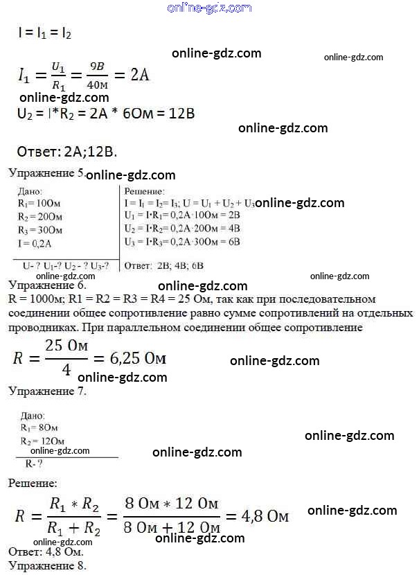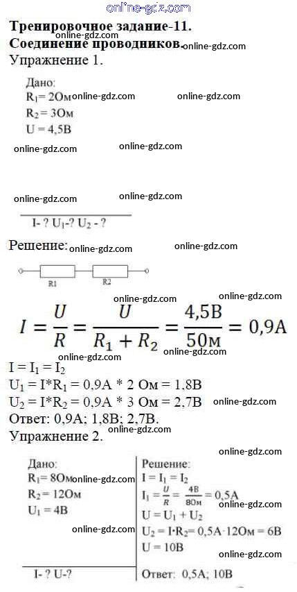 Готовые домашние задания по Физике за 8 класс Дидактические материалы Марон Вертикаль 2016 - Тренировочные задания 11. Соединение проводников