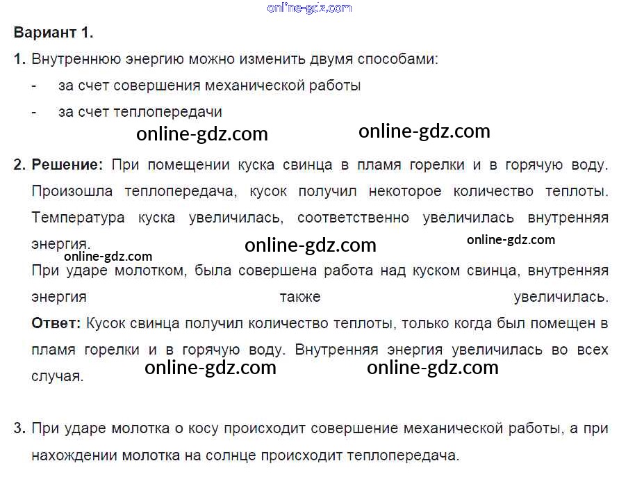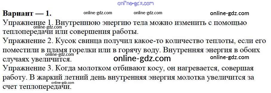 Готовые домашние задания по Физике за 8 класс Дидактические материалы Марон Вертикаль 2016 - СР №1. Внутренняя энергия. Варианты Самостоятельные работы 1