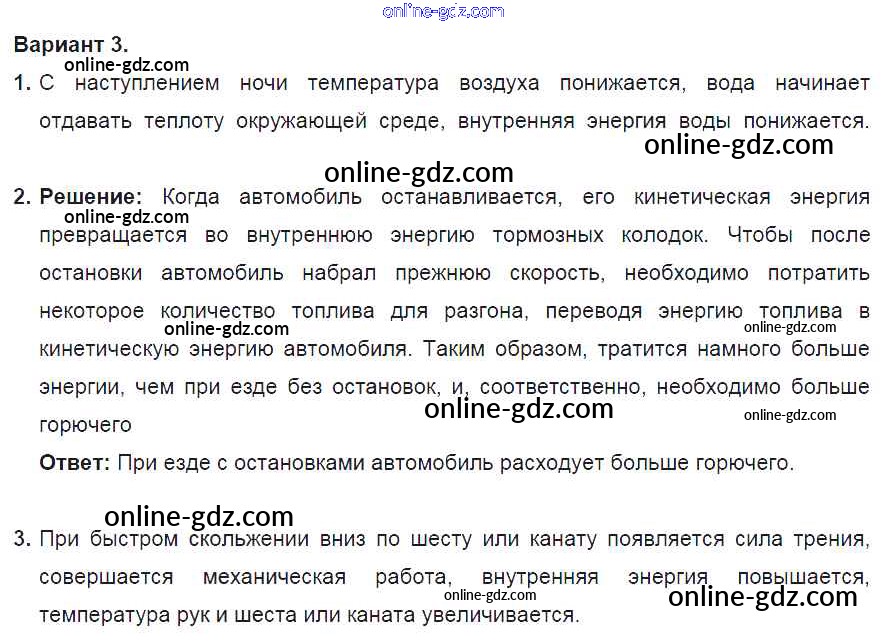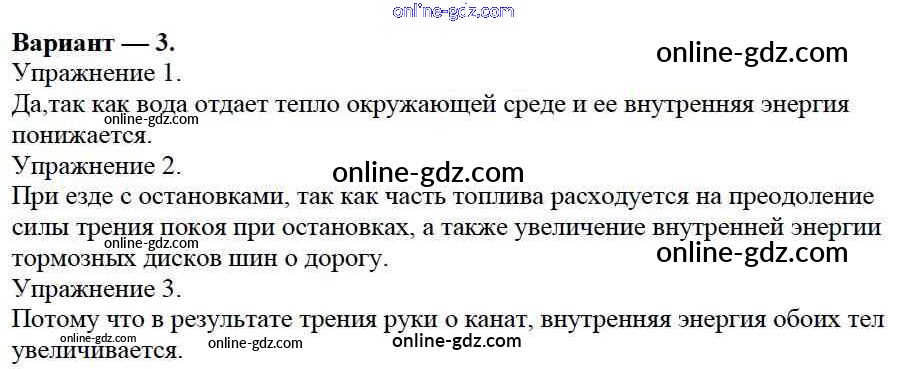 Готовые домашние задания по Физике за 8 класс Дидактические материалы Марон Вертикаль 2016 - СР №1. Внутренняя энергия. Варианты Самостоятельные работы 3