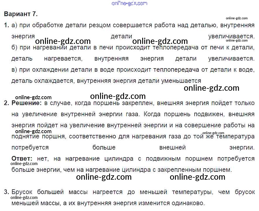 Готовые домашние задания по Физике за 8 класс Дидактические материалы Марон Вертикаль 2016 - СР №1. Внутренняя энергия. Варианты Самостоятельные работы 7