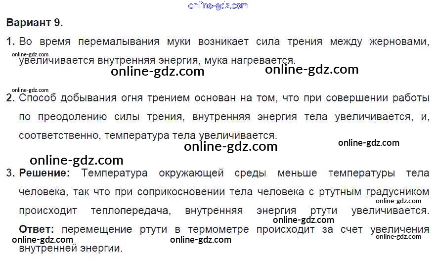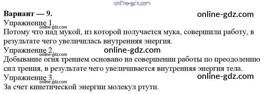 Готовые домашние задания по Физике за 8 класс Дидактические материалы Марон Вертикаль 2016 - СР №1. Внутренняя энергия. Варианты Самостоятельные работы 9