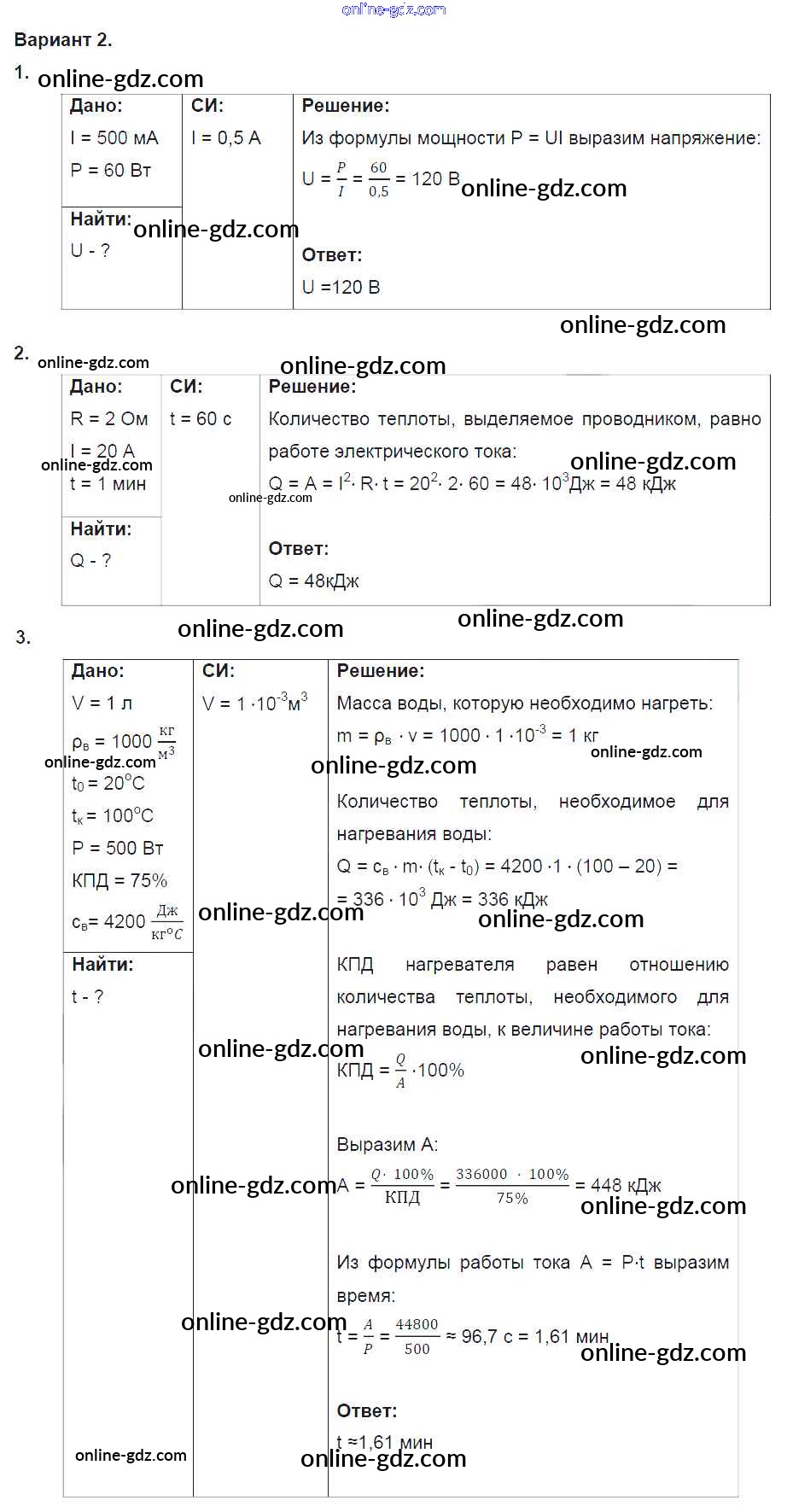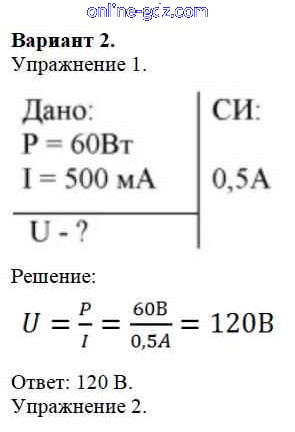 Готовые домашние задания по Физике за 8 класс Дидактические материалы Марон Вертикаль 2016 - СР №10. Работа и мощность тока. Варианты Самостоятельные работы 2