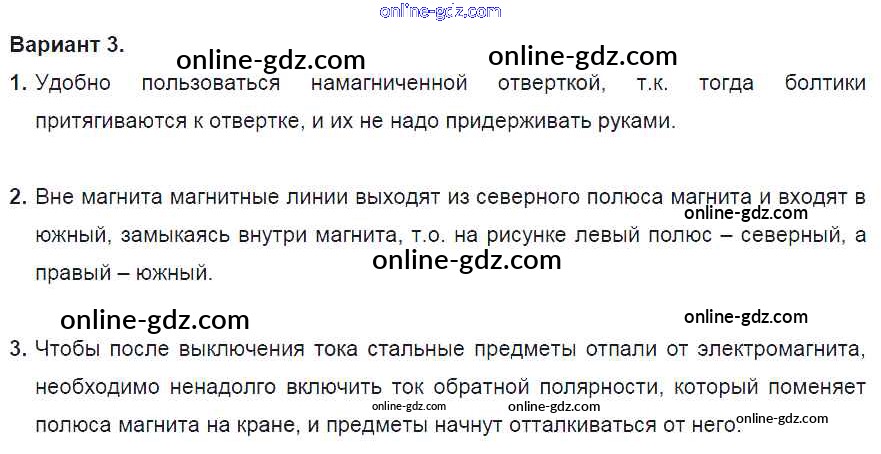 Готовые домашние задания по Физике за 8 класс Дидактические материалы Марон Вертикаль 2016 - СР №11. Электромагнитные явления. Варианты Самостоятельные работы 3