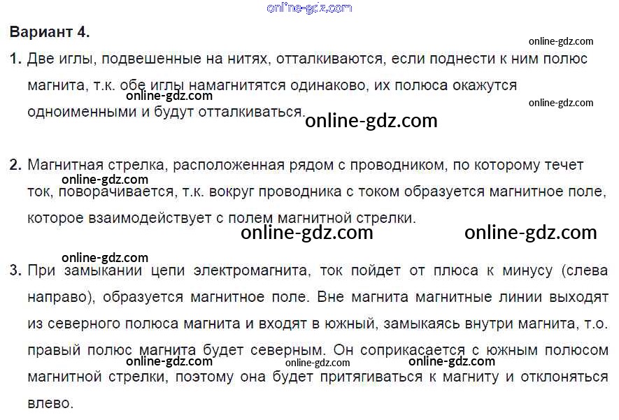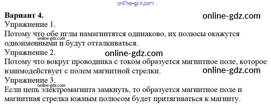 Готовые домашние задания по Физике за 8 класс Дидактические материалы Марон Вертикаль 2016 - СР №11. Электромагнитные явления. Варианты Самостоятельные работы 4