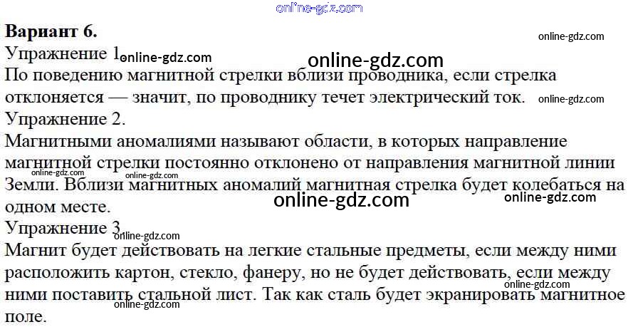 Готовые домашние задания по Физике за 8 класс Дидактические материалы Марон Вертикаль 2016 - СР №11. Электромагнитные явления. Варианты Самостоятельные работы 6