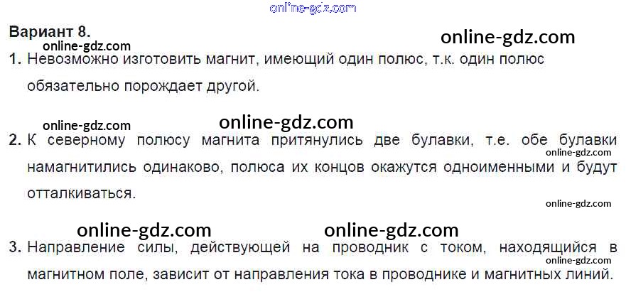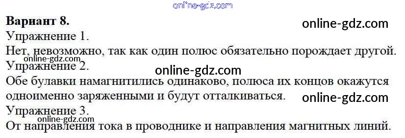 Готовые домашние задания по Физике за 8 класс Дидактические материалы Марон Вертикаль 2016 - СР №11. Электромагнитные явления. Варианты Самостоятельные работы 8