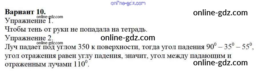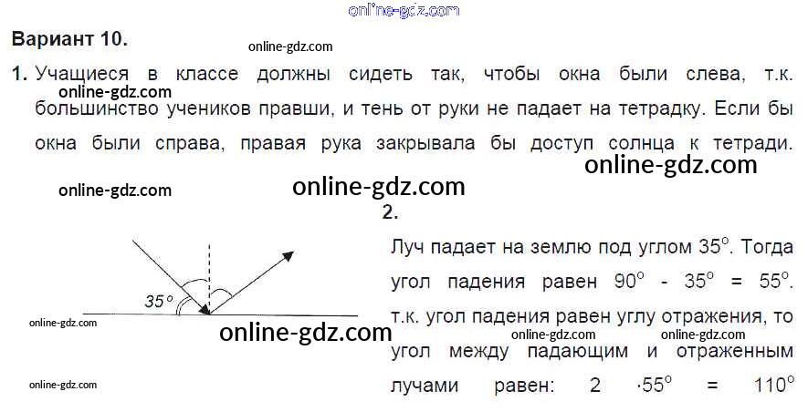 Готовые домашние задания по Физике за 8 класс Дидактические материалы Марон Вертикаль 2016 - СР №12. Отражение света. Плоское зеркало. Варианты Самостоятельные работы 10