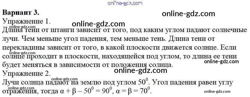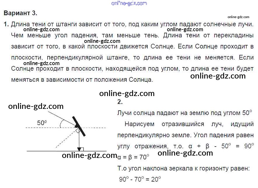 Готовые домашние задания по Физике за 8 класс Дидактические материалы Марон Вертикаль 2016 - СР №12. Отражение света. Плоское зеркало. Варианты Самостоятельные работы 3