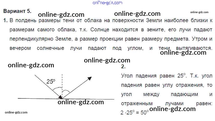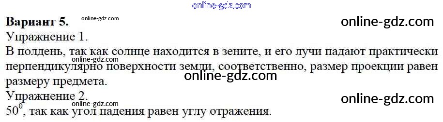 Готовые домашние задания по Физике за 8 класс Дидактические материалы Марон Вертикаль 2016 - СР №12. Отражение света. Плоское зеркало. Варианты Самостоятельные работы 5