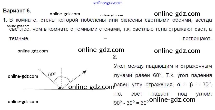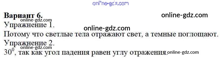 Готовые домашние задания по Физике за 8 класс Дидактические материалы Марон Вертикаль 2016 - СР №12. Отражение света. Плоское зеркало. Варианты Самостоятельные работы 6