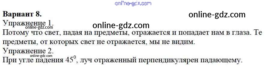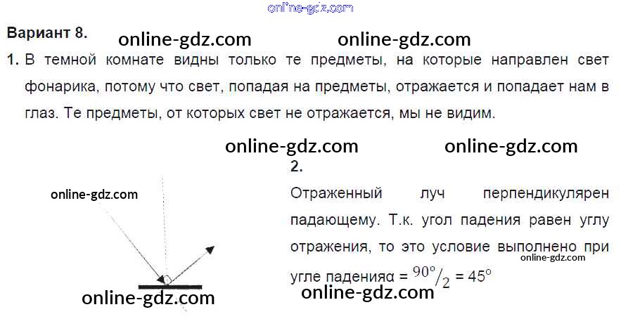 Готовые домашние задания по Физике за 8 класс Дидактические материалы Марон Вертикаль 2016 - СР №12. Отражение света. Плоское зеркало. Варианты Самостоятельные работы 8