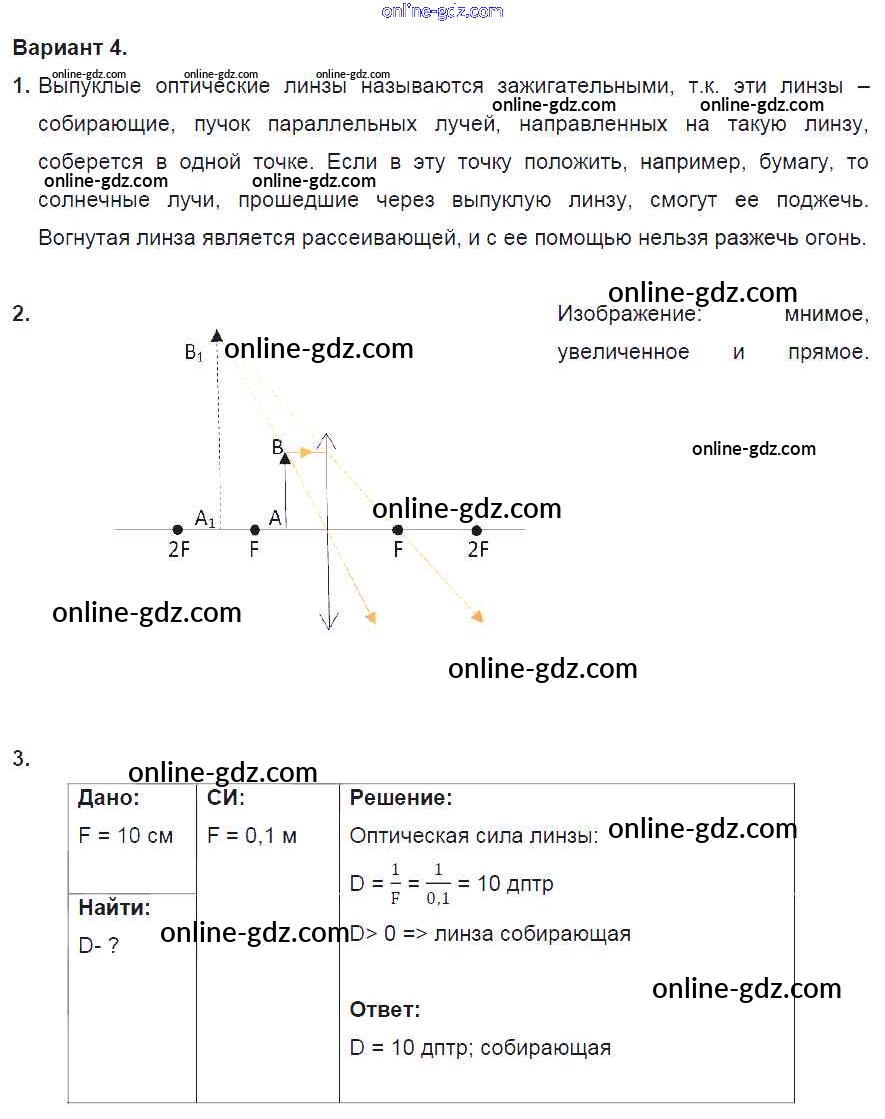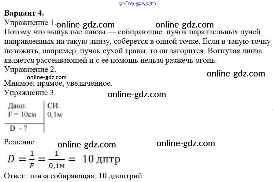 Готовые домашние задания по Физике за 8 класс Дидактические материалы Марон Вертикаль 2016 - СР №13. Преломление света. Линзы. Варианты Самостоятельные работы 4