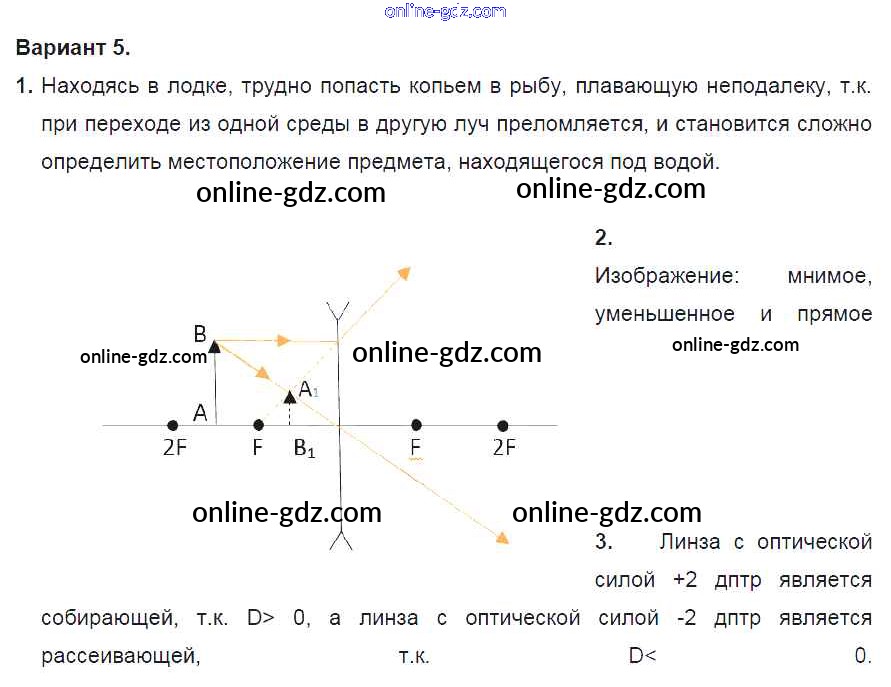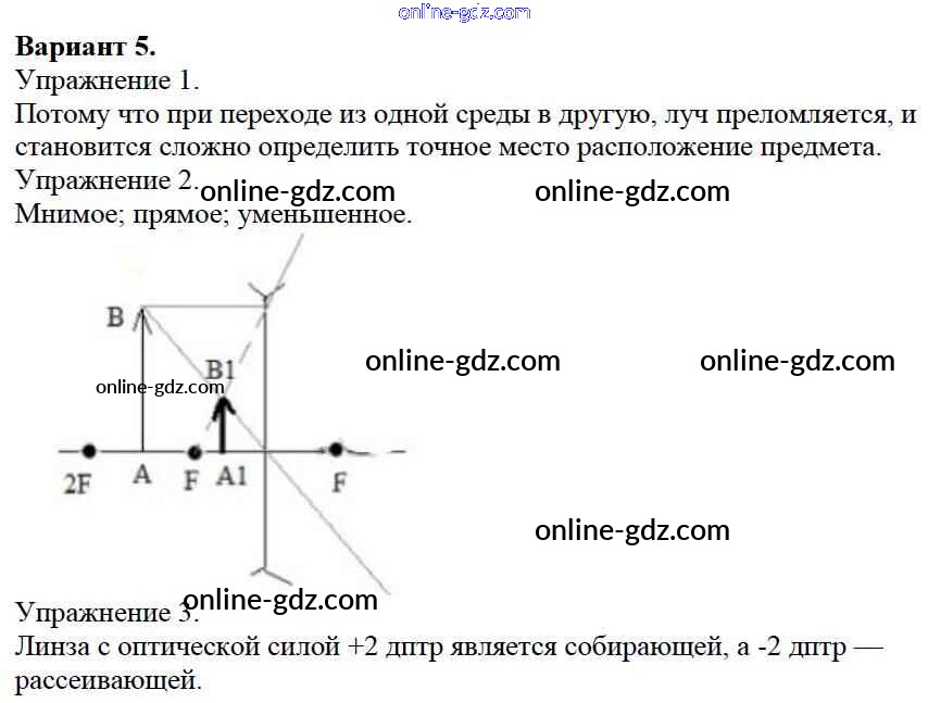 Готовые домашние задания по Физике за 8 класс Дидактические материалы Марон Вертикаль 2016 - СР №13. Преломление света. Линзы. Варианты Самостоятельные работы 5