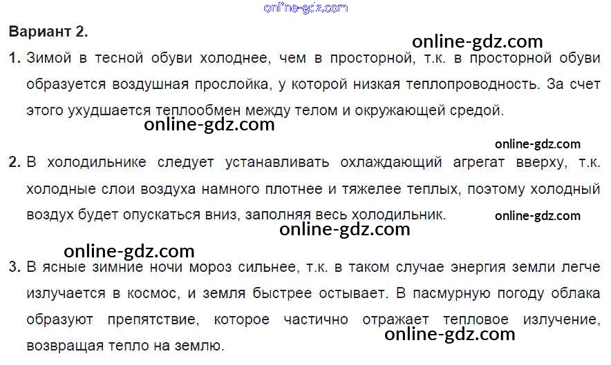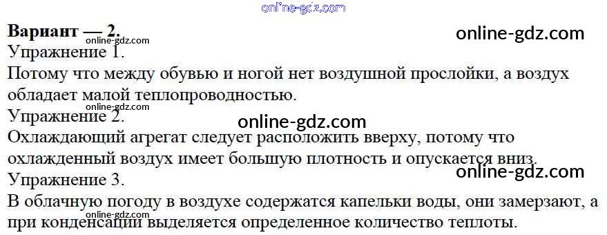 Готовые домашние задания по Физике за 8 класс Дидактические материалы Марон Вертикаль 2016 - СР №2. Виды теплопередачи. Варианты Самостоятельные работы 2