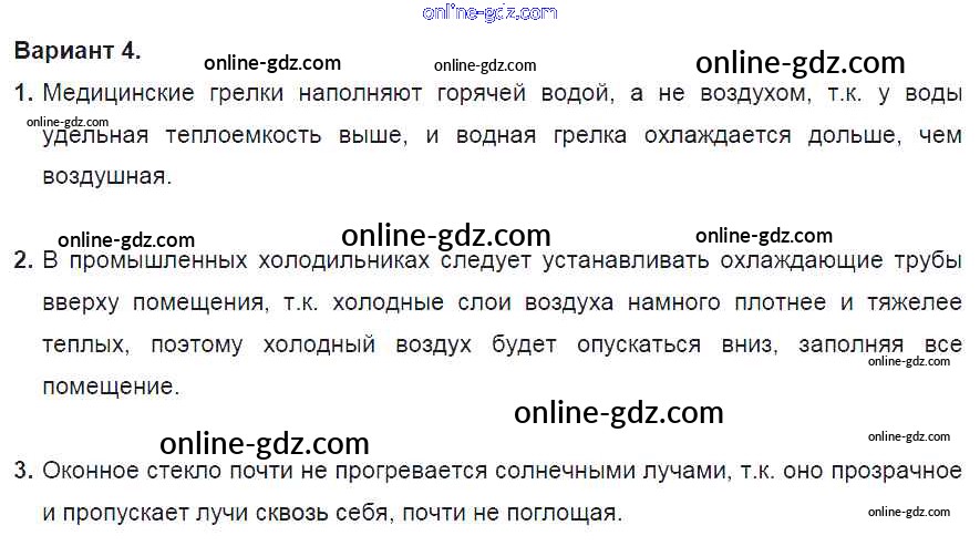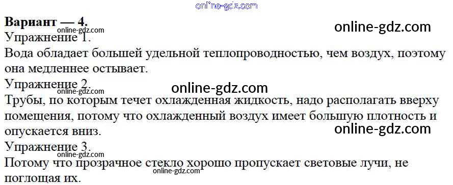 Готовые домашние задания по Физике за 8 класс Дидактические материалы Марон Вертикаль 2016 - СР №2. Виды теплопередачи. Варианты Самостоятельные работы 4