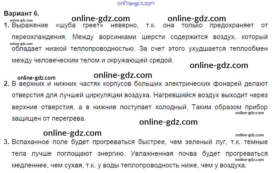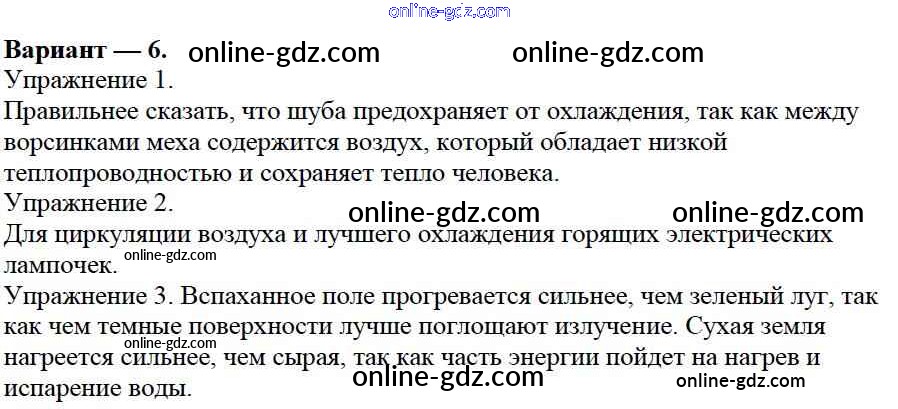 Готовые домашние задания по Физике за 8 класс Дидактические материалы Марон Вертикаль 2016 - СР №2. Виды теплопередачи. Варианты Самостоятельные работы 6