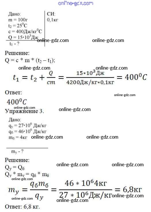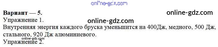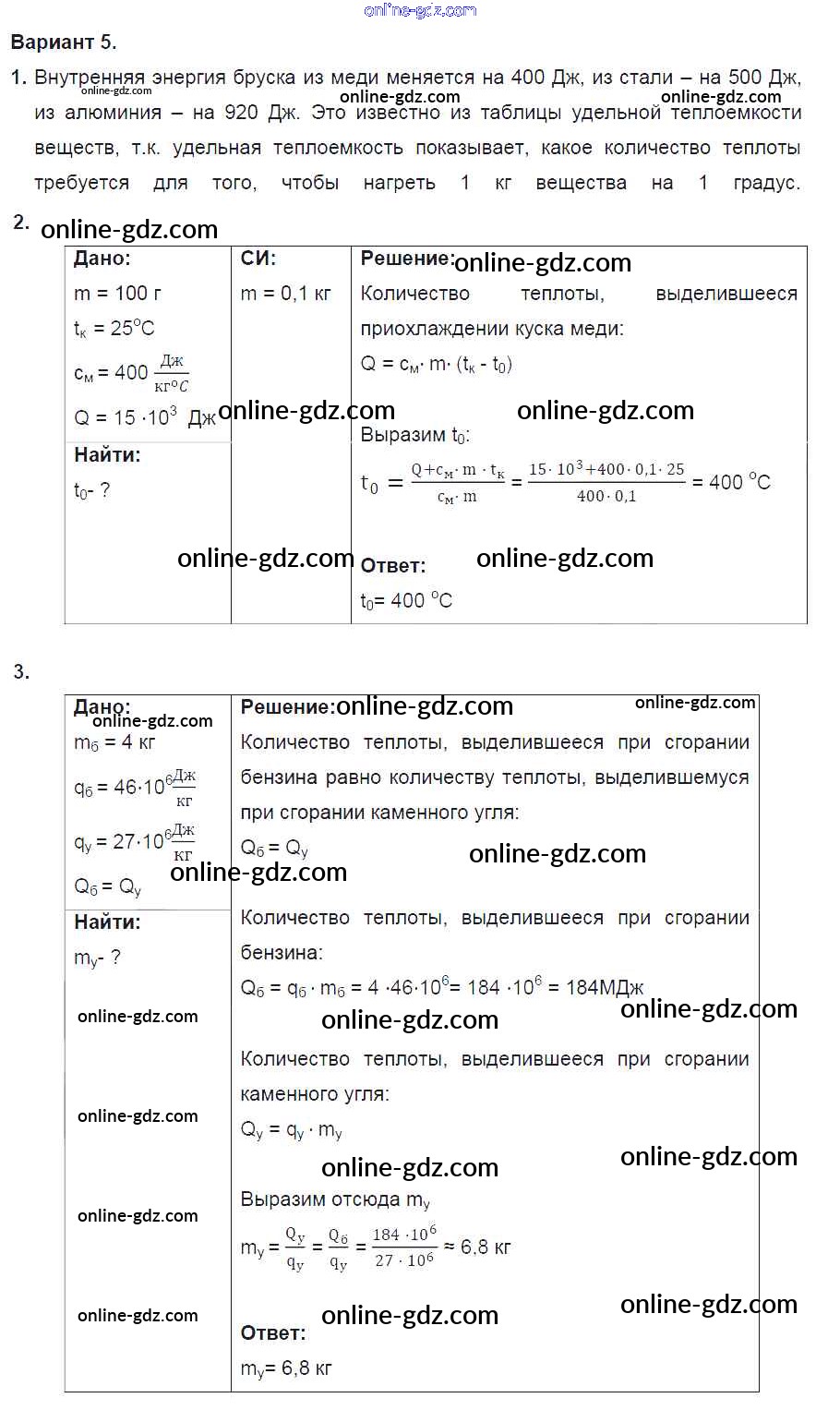 Готовые домашние задания по Физике за 8 класс Дидактические материалы Марон Вертикаль 2016 - СР №3. Количество теплоты. Энергия топлива. Варианты Самостоятельные работы 5