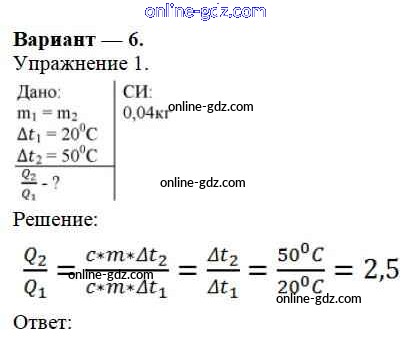 Готовые домашние задания по Физике за 8 класс Дидактические материалы Марон Вертикаль 2016 - СР №3. Количество теплоты. Энергия топлива. Варианты Самостоятельные работы 6