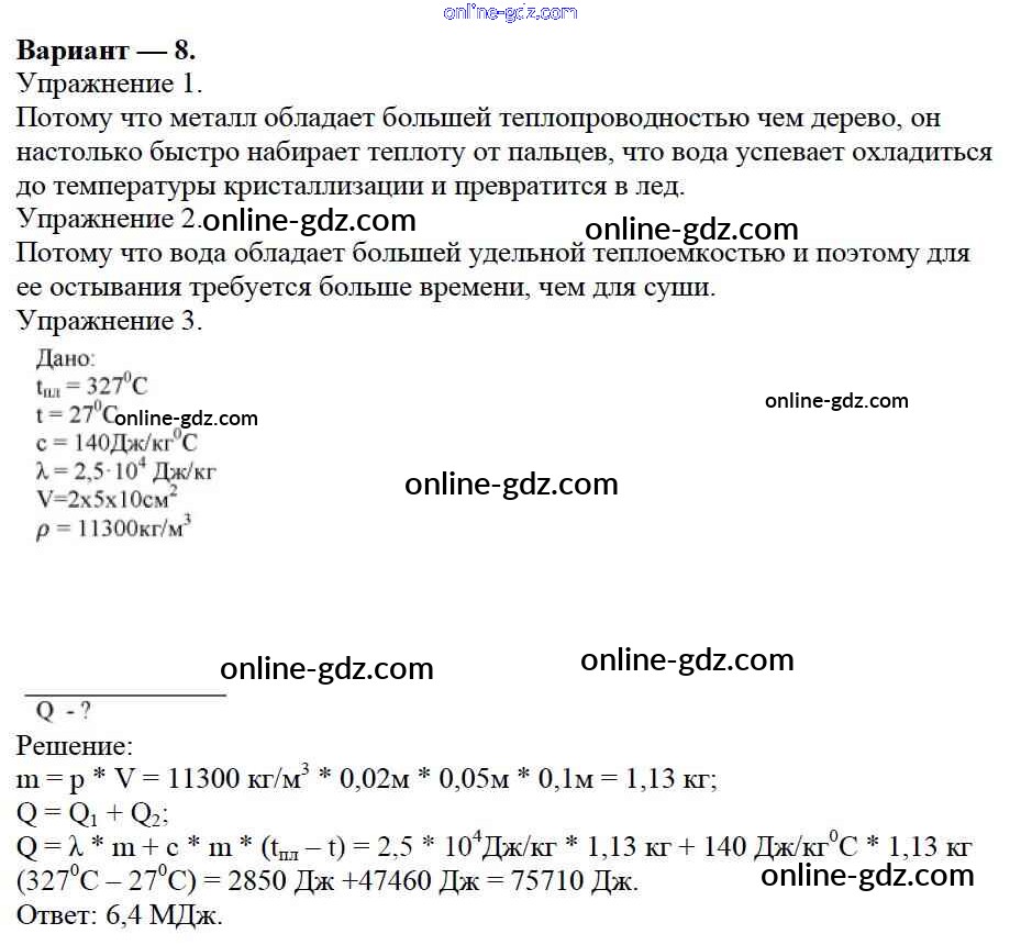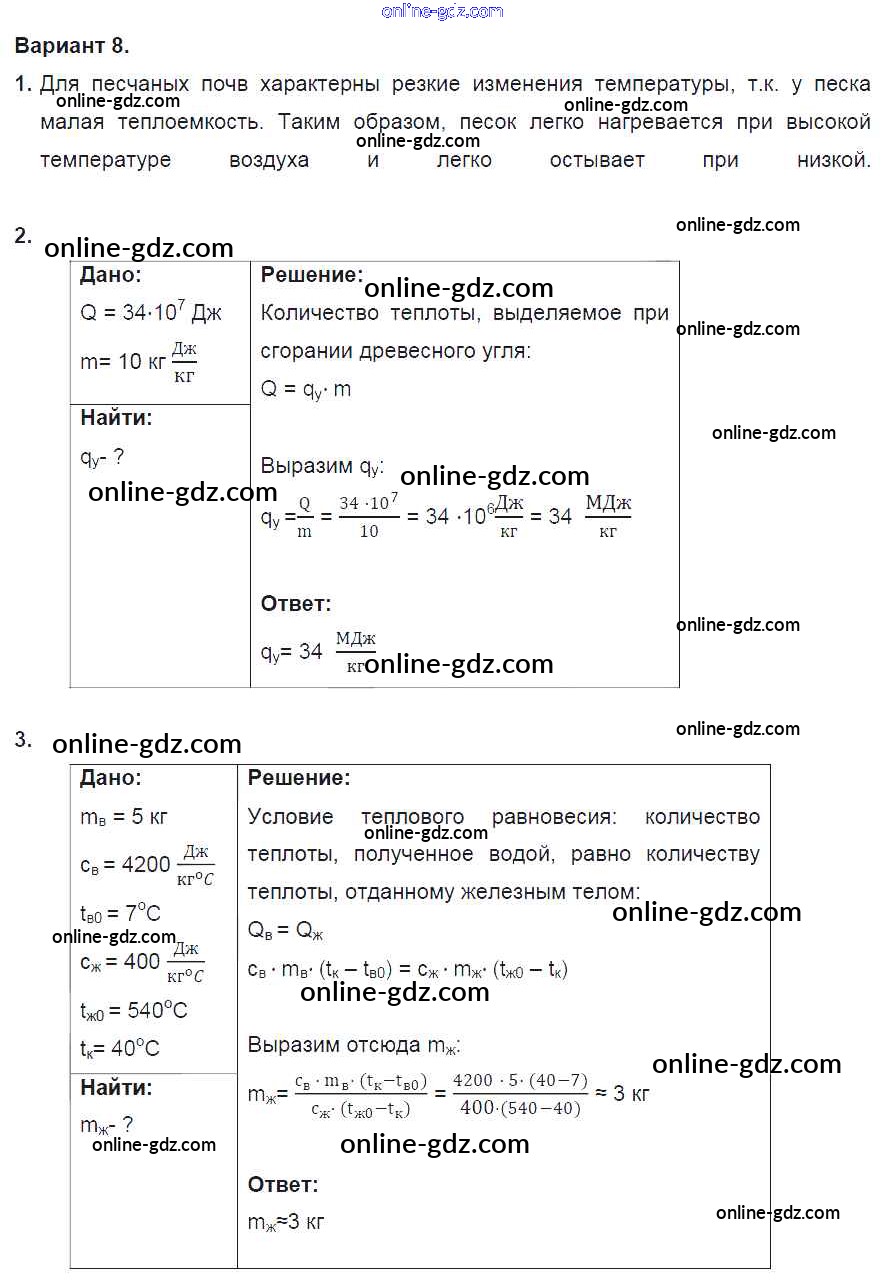 Готовые домашние задания по Физике за 8 класс Дидактические материалы Марон Вертикаль 2016 - СР №3. Количество теплоты. Энергия топлива. Варианты Самостоятельные работы 8