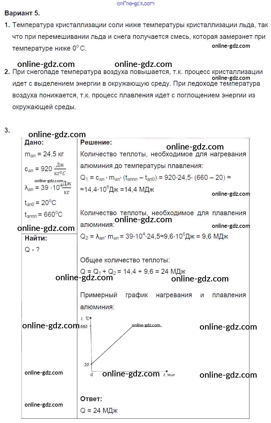 Готовые домашние задания по Физике за 8 класс Дидактические материалы Марон Вертикаль 2016 - СР №4. Плавление и отвердение. Варианты Самостоятельные работы 5