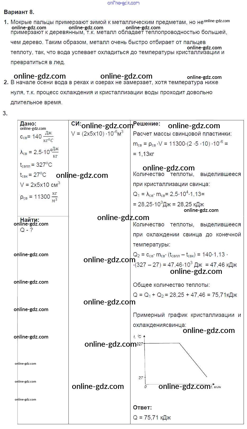Готовые домашние задания по Физике за 8 класс Дидактические материалы Марон Вертикаль 2016 - СР №4. Плавление и отвердение. Варианты Самостоятельные работы 8
