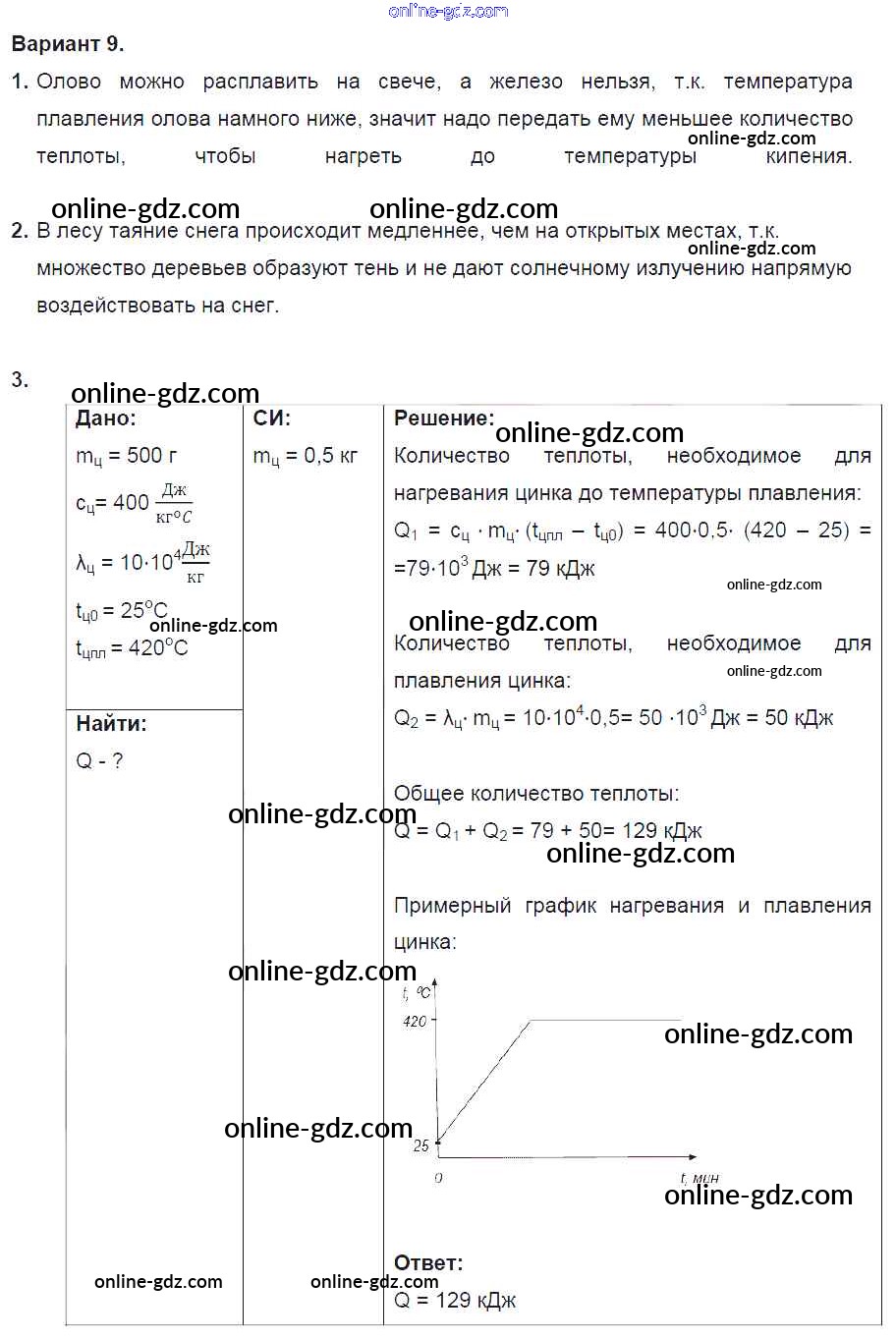Готовые домашние задания по Физике за 8 класс Дидактические материалы Марон Вертикаль 2016 - СР №4. Плавление и отвердение. Варианты Самостоятельные работы 9