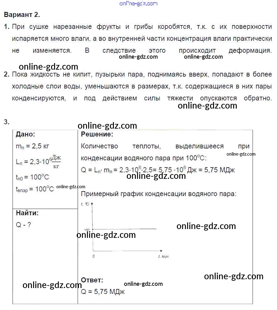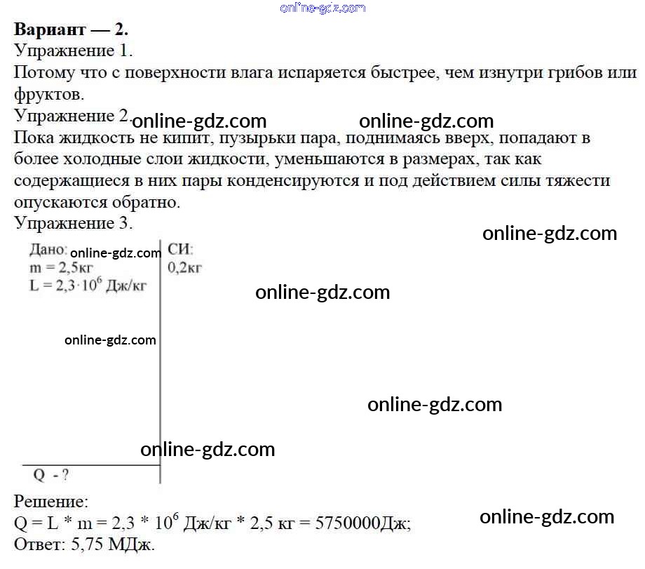 Готовые домашние задания по Физике за 8 класс Дидактические материалы Марон Вертикаль 2016 - СР №5. Испарение и конденсация. Варианты Самостоятельные работы 2