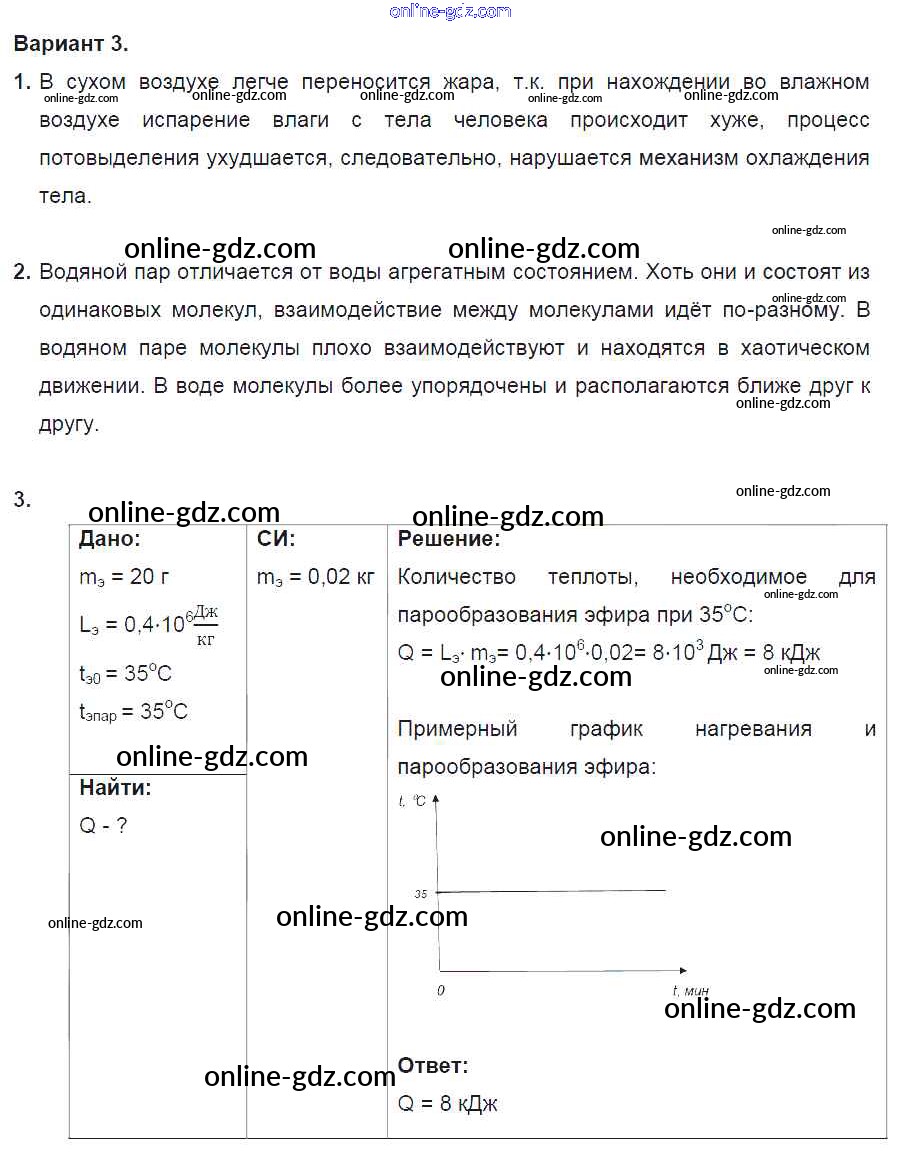Готовые домашние задания по Физике за 8 класс Дидактические материалы Марон Вертикаль 2016 - СР №5. Испарение и конденсация. Варианты Самостоятельные работы 3