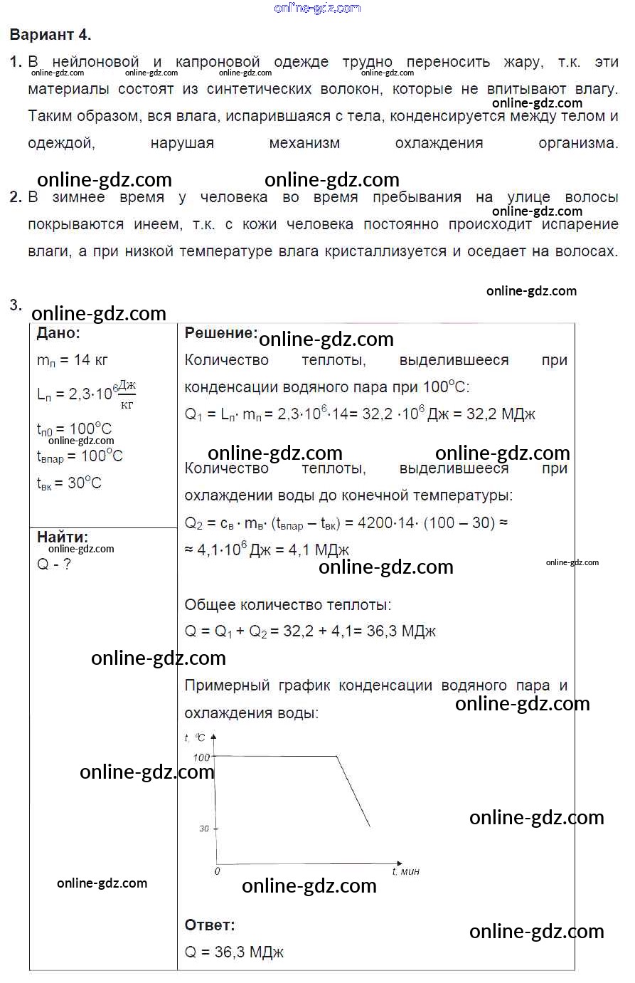Готовые домашние задания по Физике за 8 класс Дидактические материалы Марон Вертикаль 2016 - СР №5. Испарение и конденсация. Варианты Самостоятельные работы 4
