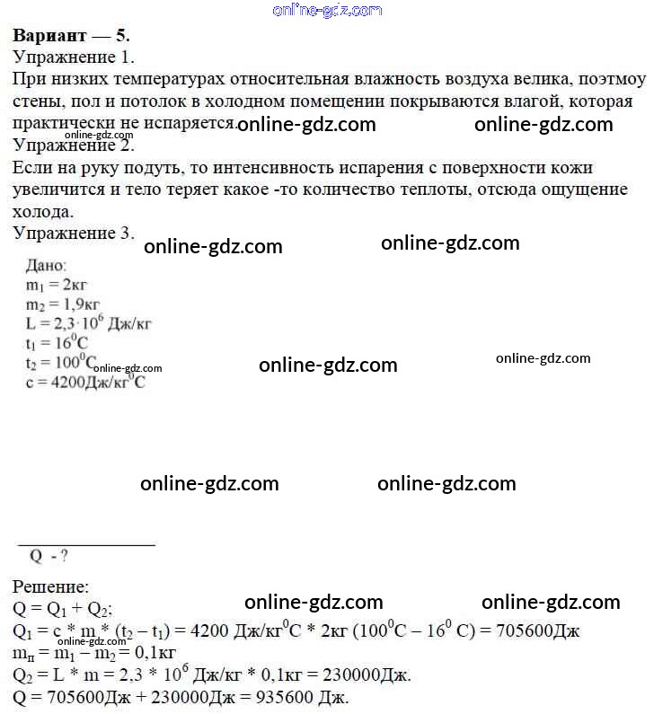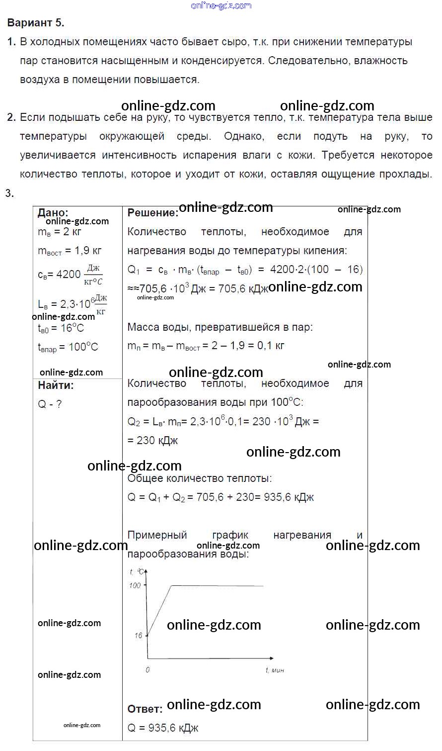 Готовые домашние задания по Физике за 8 класс Дидактические материалы Марон Вертикаль 2016 - СР №5. Испарение и конденсация. Варианты Самостоятельные работы 5
