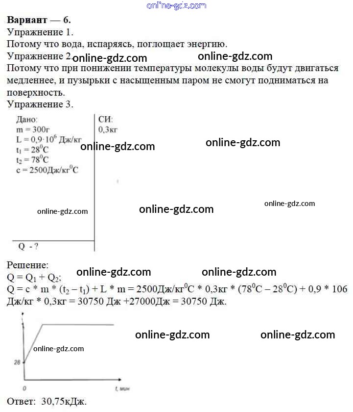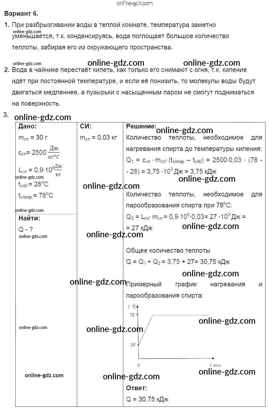 Готовые домашние задания по Физике за 8 класс Дидактические материалы Марон Вертикаль 2016 - СР №5. Испарение и конденсация. Варианты Самостоятельные работы 6