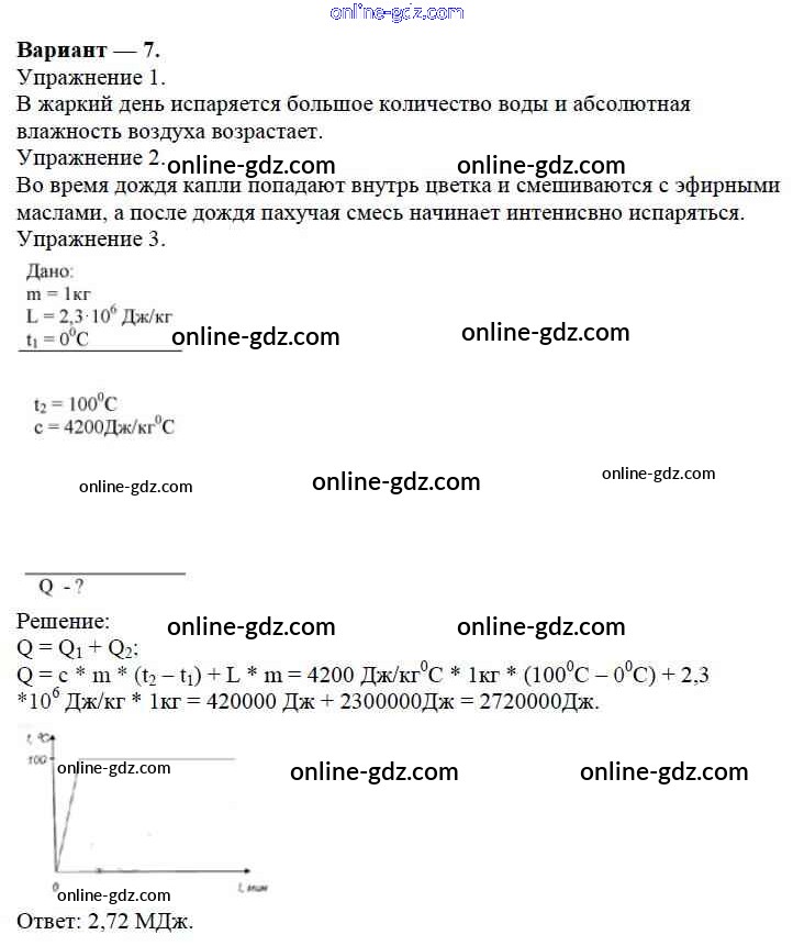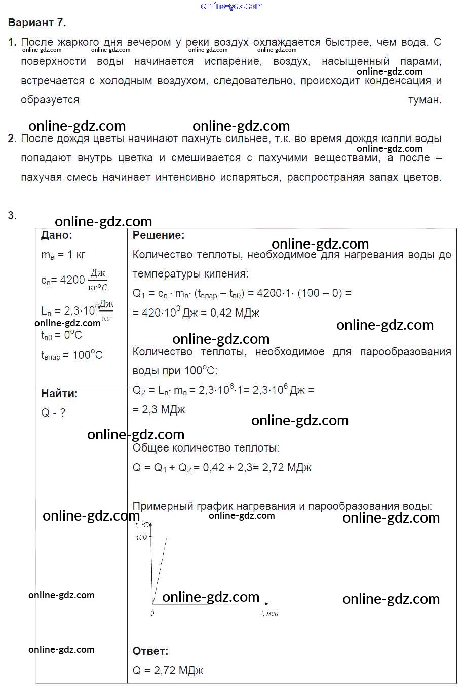 Готовые домашние задания по Физике за 8 класс Дидактические материалы Марон Вертикаль 2016 - СР №5. Испарение и конденсация. Варианты Самостоятельные работы 7