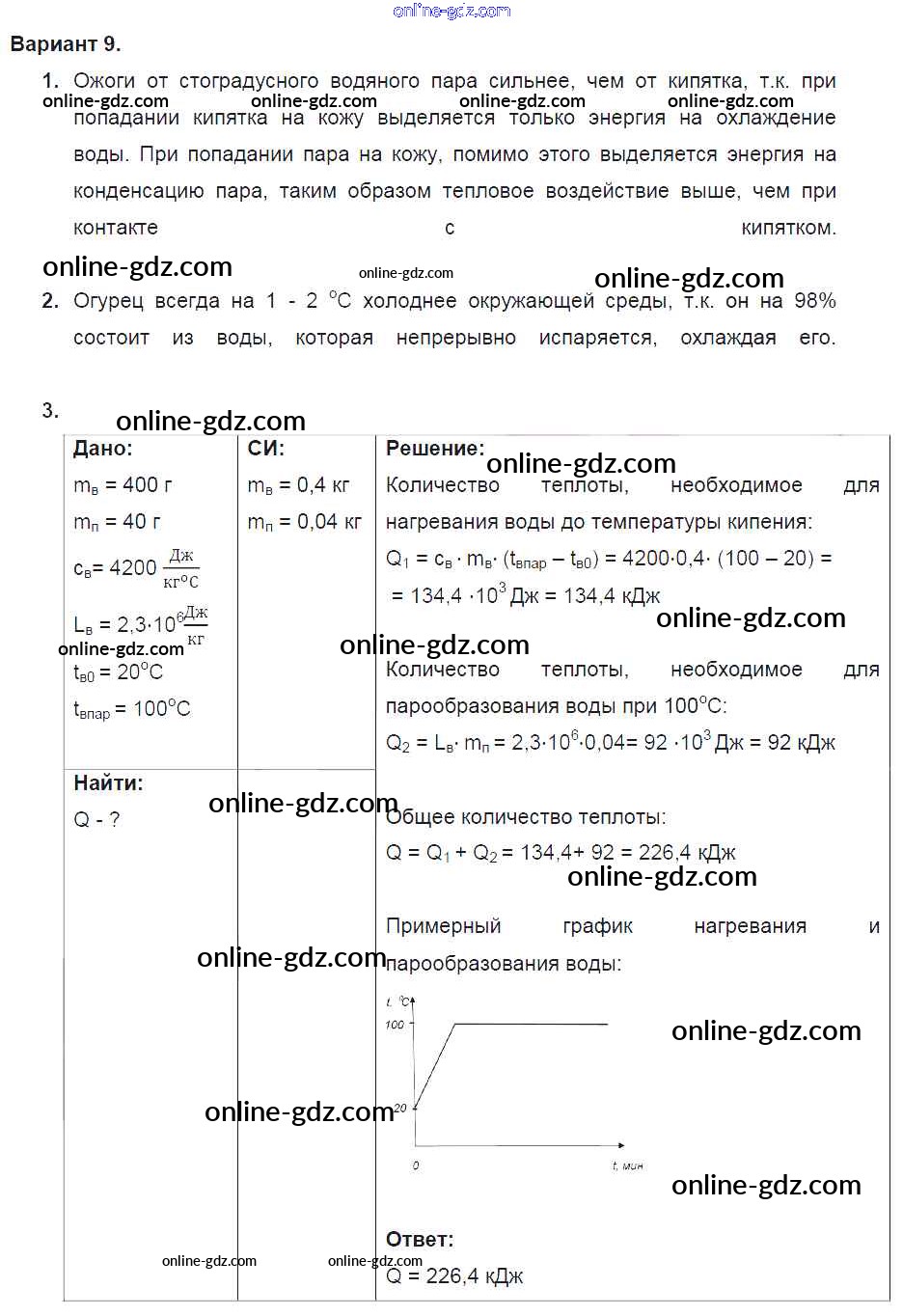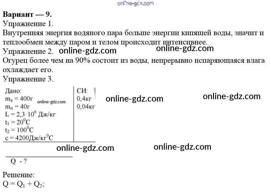 Готовые домашние задания по Физике за 8 класс Дидактические материалы Марон Вертикаль 2016 - СР №5. Испарение и конденсация. Варианты Самостоятельные работы 9