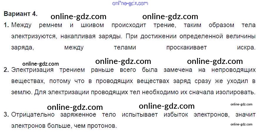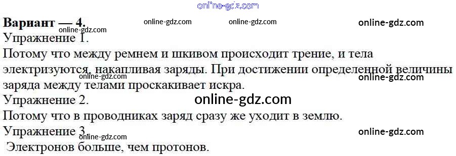 Готовые домашние задания по Физике за 8 класс Дидактические материалы Марон Вертикаль 2016 - СР №6. Электризация тел. Электрическое поле. Строение атома. Варианты Самостоятельные работы 4