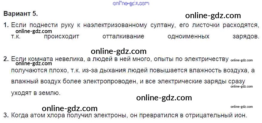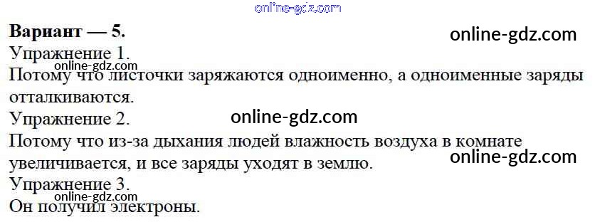 Готовые домашние задания по Физике за 8 класс Дидактические материалы Марон Вертикаль 2016 - СР №6. Электризация тел. Электрическое поле. Строение атома. Варианты Самостоятельные работы 5