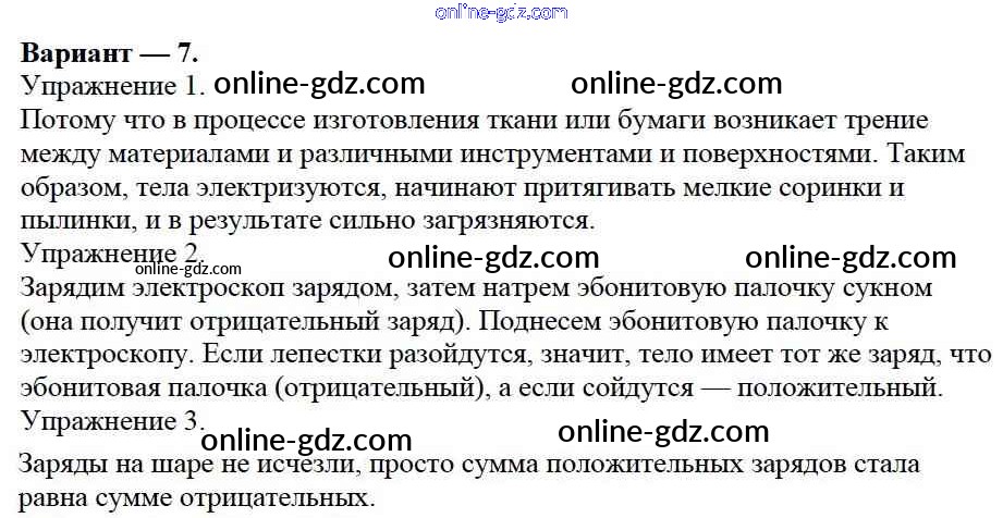 Готовые домашние задания по Физике за 8 класс Дидактические материалы Марон Вертикаль 2016 - СР №6. Электризация тел. Электрическое поле. Строение атома. Варианты Самостоятельные работы 7