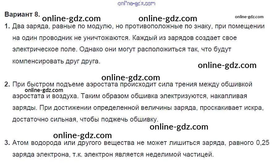 Готовые домашние задания по Физике за 8 класс Дидактические материалы Марон Вертикаль 2016 - СР №6. Электризация тел. Электрическое поле. Строение атома. Варианты Самостоятельные работы 8