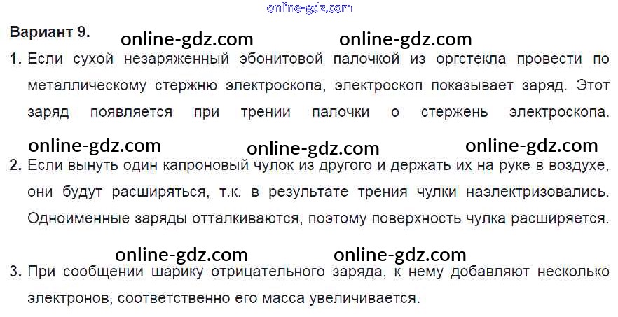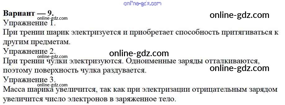 Готовые домашние задания по Физике за 8 класс Дидактические материалы Марон Вертикаль 2016 - СР №6. Электризация тел. Электрическое поле. Строение атома. Варианты Самостоятельные работы 9