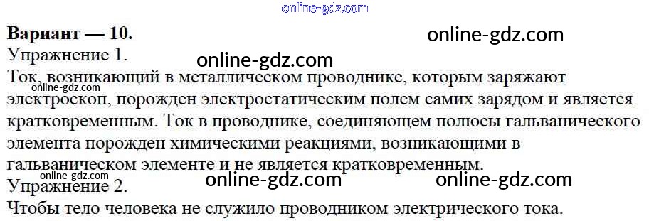 Готовые домашние задания по Физике за 8 класс Дидактические материалы Марон Вертикаль 2016 - СР №7. Электрический ток. Варианты Самостоятельные работы 10