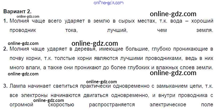Готовые домашние задания по Физике за 8 класс Дидактические материалы Марон Вертикаль 2016 - СР №7. Электрический ток. Варианты Самостоятельные работы 2